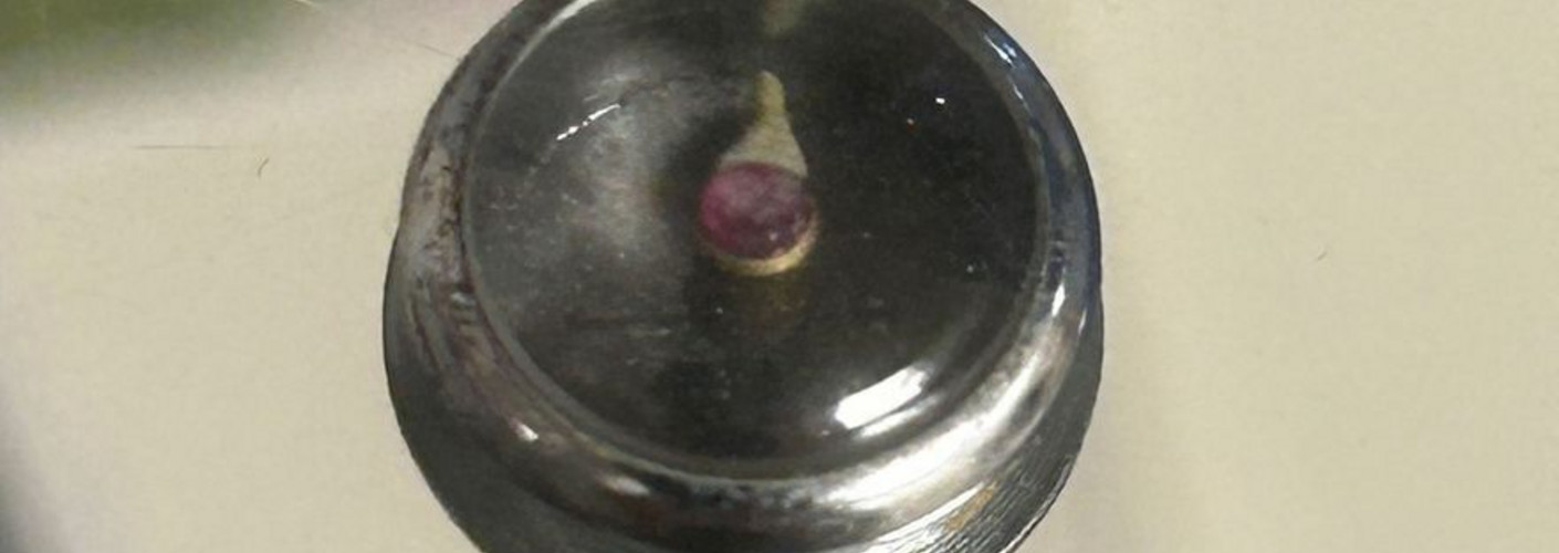 Bouton-pression contenant une mini boussole accroché au blouson d'Herbert Brill